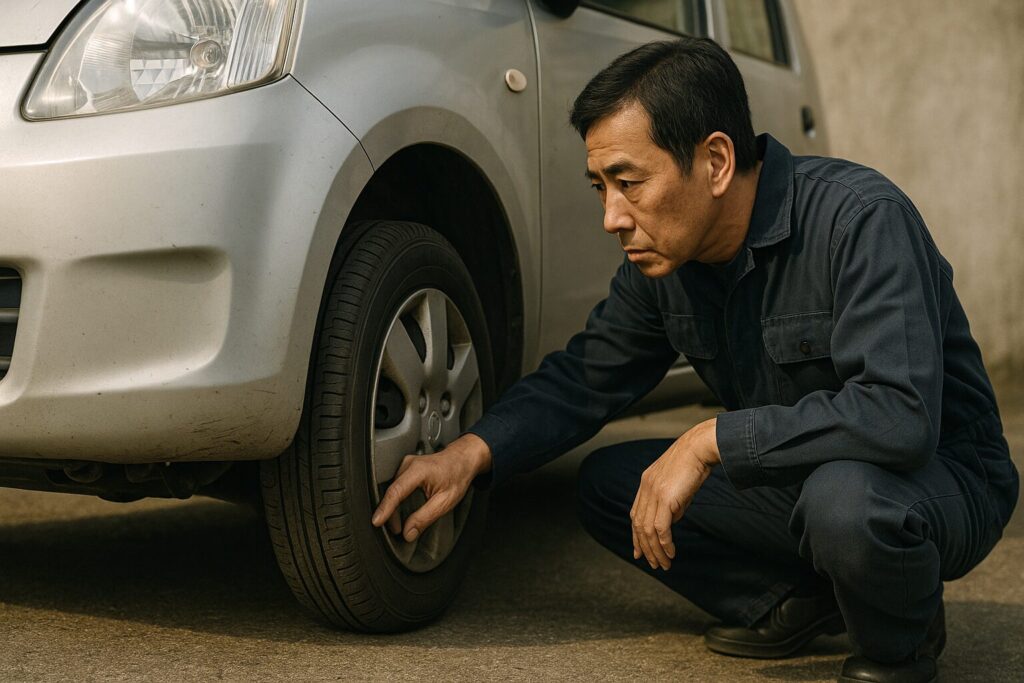- タイヤ: 残溝が3mm以上あるか確認(交換は数万円の出費)